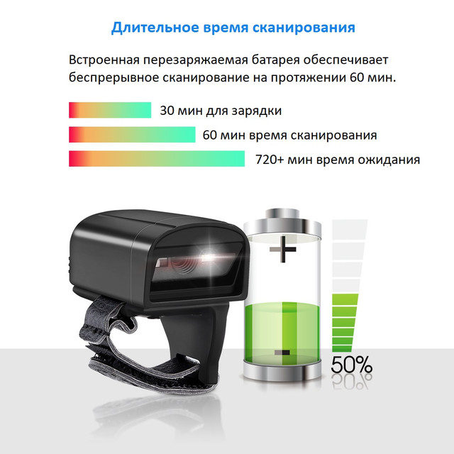 Зручність експлуатації Сканер під'єднується до будь-якого портативного пристрою (смартфон, планшет, ТСД) або персонального комп'ютера через Bluetooth-канал, через USB кабель або через 2.4G бездротовий приймач. Невеликий розмір забезпечує високий комфорт експлуатації наручного сканера. Крім того, прилад синхронізувати з усіма популярними ОС Windows/Android/IOS/Ubuntu/Mac. |